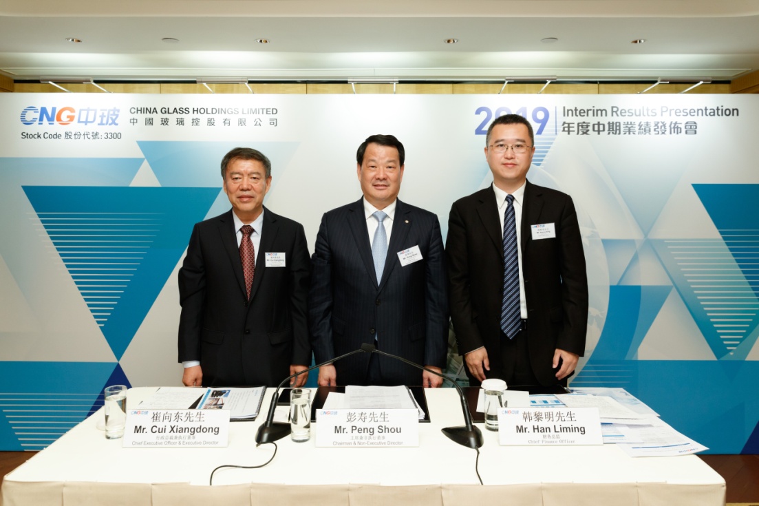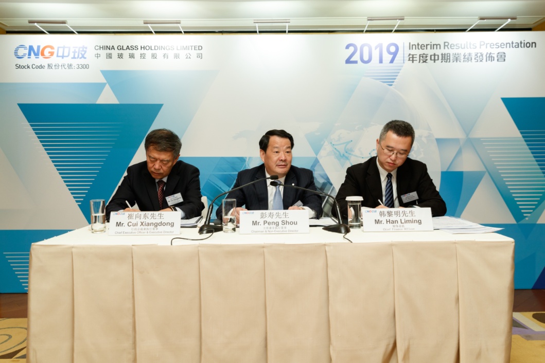 中国玻璃于8月28日在香港成功召开2019年中期业绩发布会,发布会由公司董事局主席彭寿主持, 行政总裁崔向东就2019年上半年玻璃行业市场情况、经营状况以及2019年下半年市场展望等方面向与会者进行了介绍,财务总监韩黎明先生介绍了2019年上半年公司业绩表现等相关财务数据。