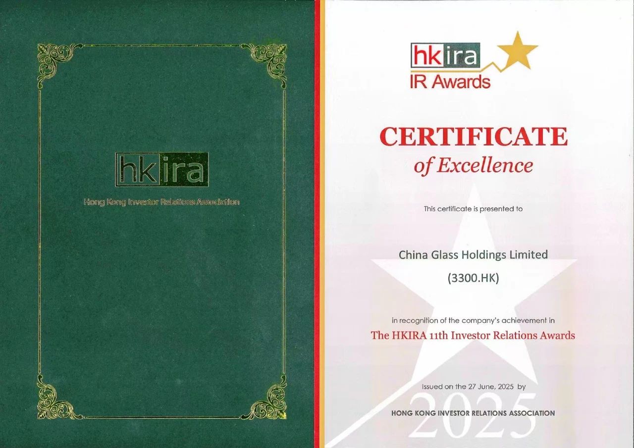 近日,香港投资者关系协会(HKIRA)公布2025年第十一届投资者关系大奖评选结果,中国玻璃(股票代码:03300.HK)凭借扎实的投资者关系管理工作,蝉联该奖项,体现了资本市场对中国玻璃长期发展的持续认可。